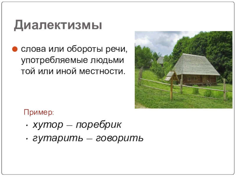 Слайд 25Диалектизмы