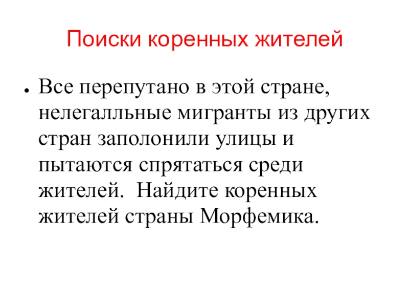 стран заполонили улицы и пытаются спрятаться среди жителей. Найдите коренных жителей страны Морфемика.