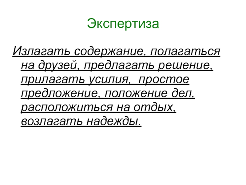 Излагать содержание, полагаться на друзей, предлагать решение, прилагать усилия, простое предложение,