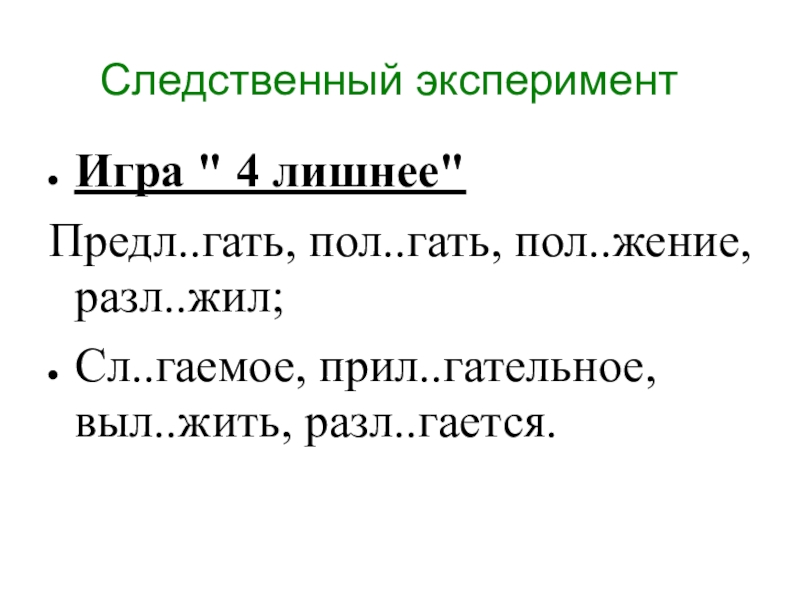 Сл..гаемое, прил..гательное, выл..жить, разл..гается.