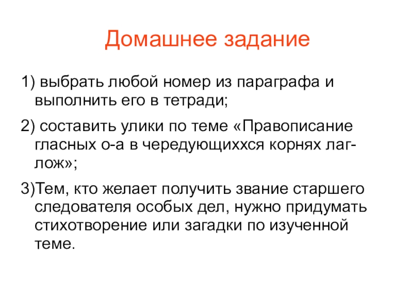 3)Тем, кто желает получить звание старшего следователя особых дел, нужно придумать стихотворение или загадки по изученной теме.
