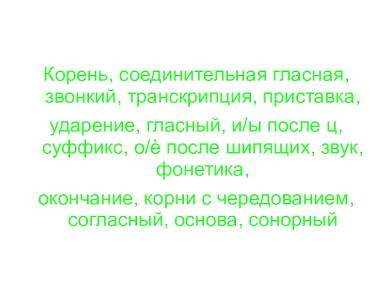 Корень, соединительная гласная, звонкий, транскрипция, приставка,