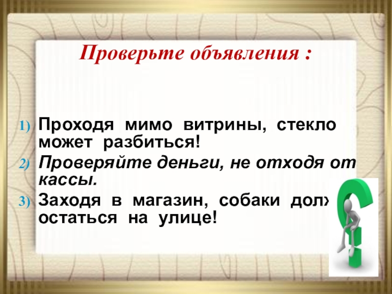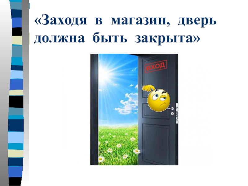 Слайд 6«Заходя в магазин, дверь должна быть закрыта»