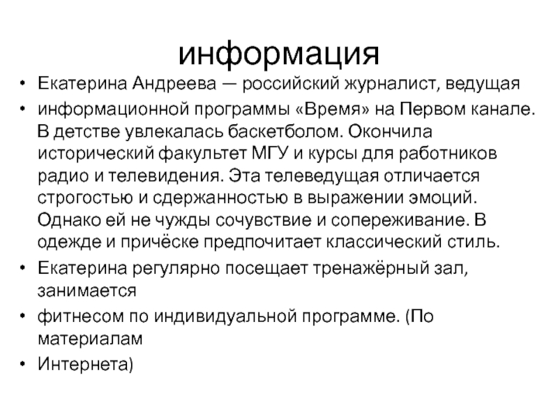 Екатерина Андреева — российский журналист, ведущая