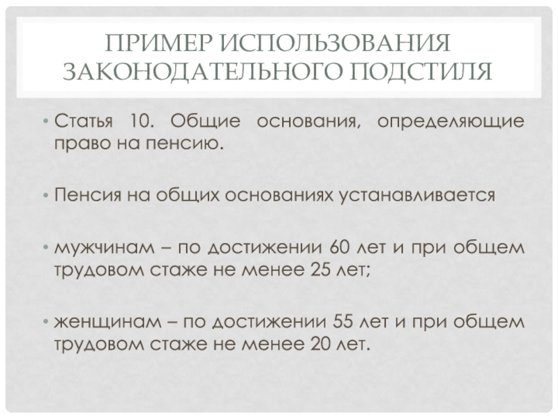 Законодательный подстиль – это язык законодательных документов, связанных с деятельностью