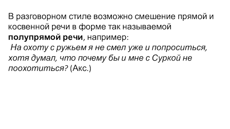 Слайд 9В разговорном стиле возможно смешение прямой и косвенной речи в форме