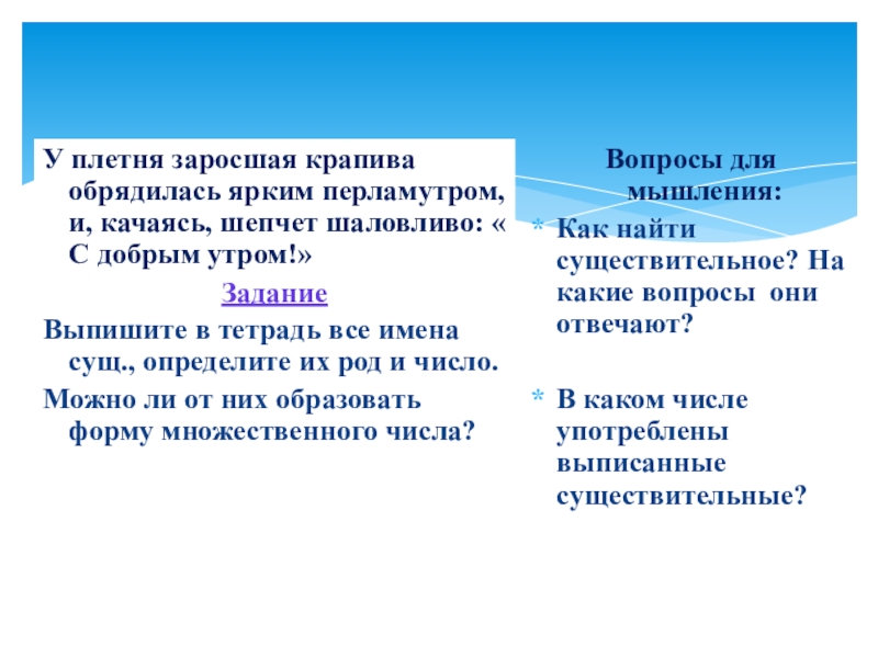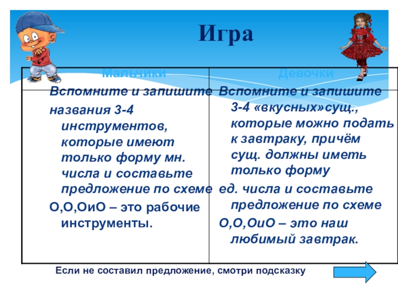 Вспомните и запишите 3-4 «вкусных»сущ., которые можно подать к завтраку, причём сущ. должны иметь только форму