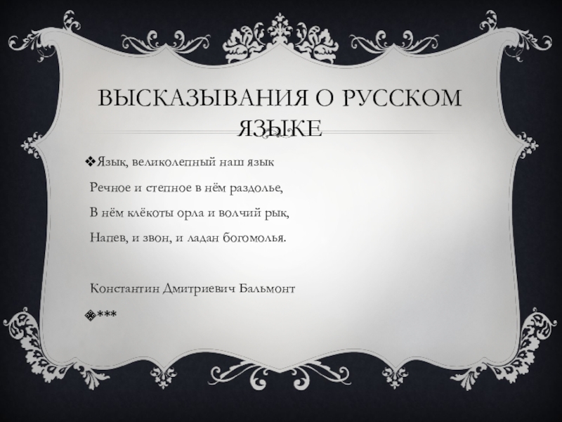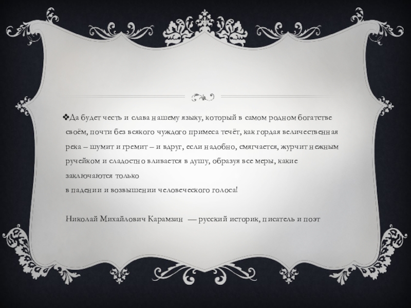 Слайд 72Да будет честь и слава нашему языку, который в самом родном
