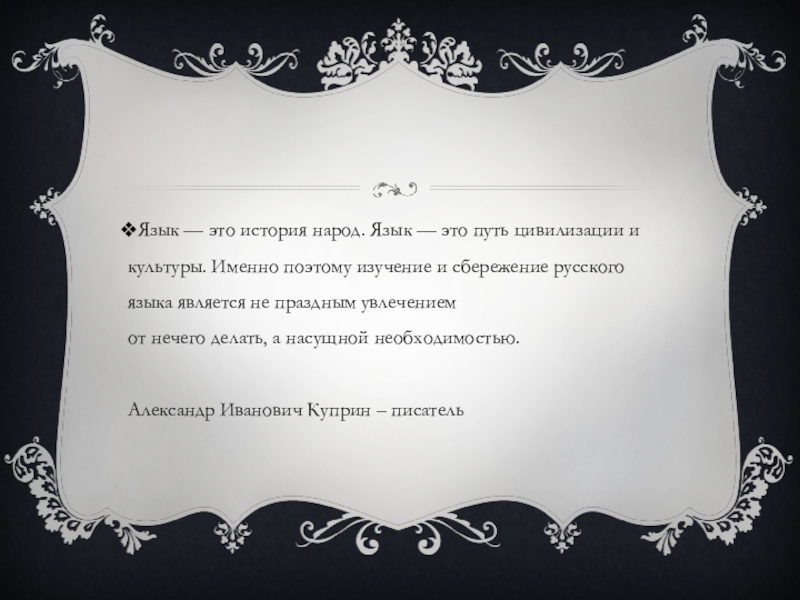 культуры. Именно поэтому изучение и сбережение русского языка является не праздным увлечением