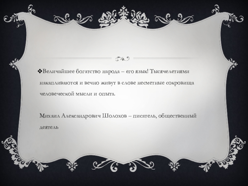 Слайд 78Величайшее богатство народа – его язык! Тысячелетиями накапливаются и вечно живут