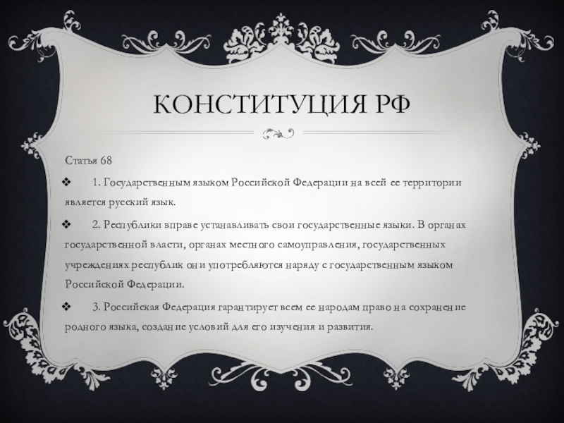 3. Российская Федерация гарантирует всем ее народам право на сохранение родного языка, создание условий для его изучения и развития.