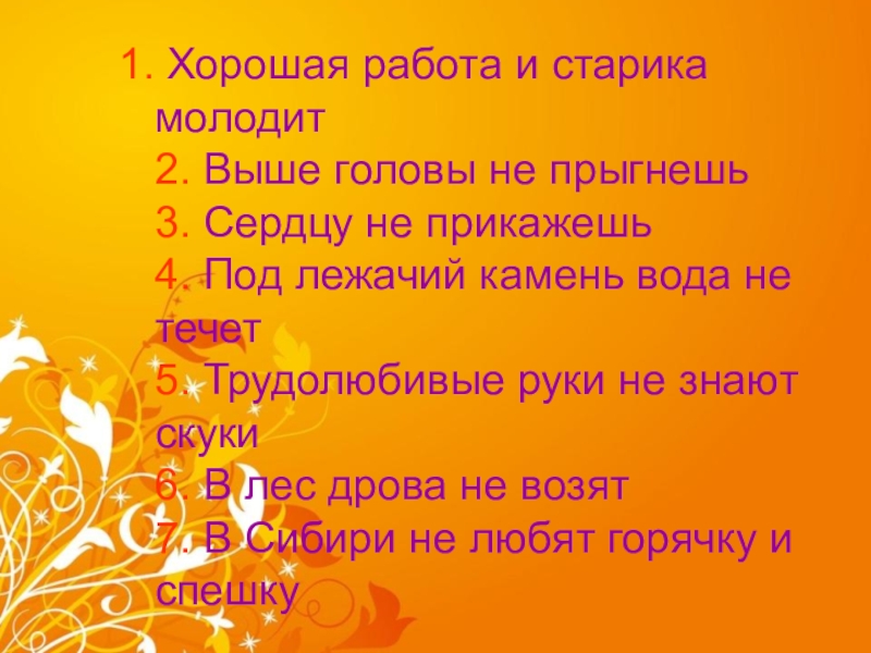 Слайд 5 1. Хорошая работа и старика молодит
