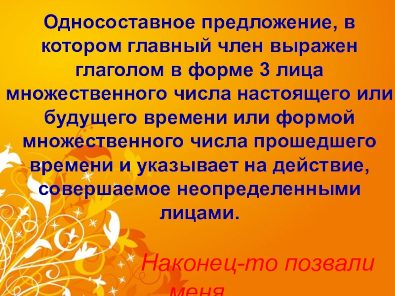 лица множественного числа настоящего или будущего времени или формой множественного числа прошедшего времени и указывает на действие, совершаемое неопределенными лицами.