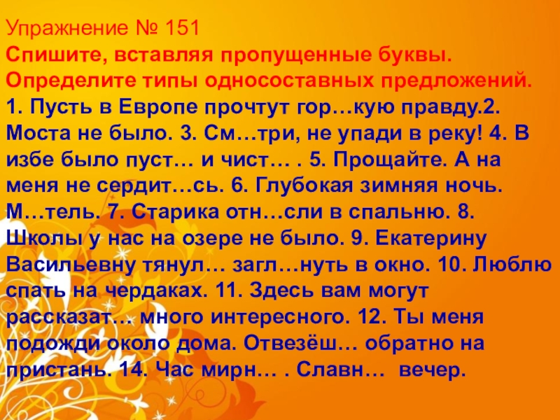 Слайд 71.Найдите односоставное предложение.