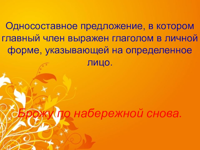 Односоставное предложение, в котором главный член выражен глаголом в личной форме,