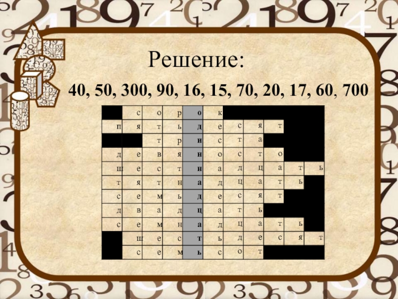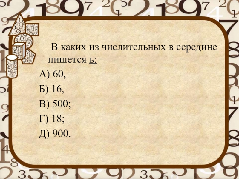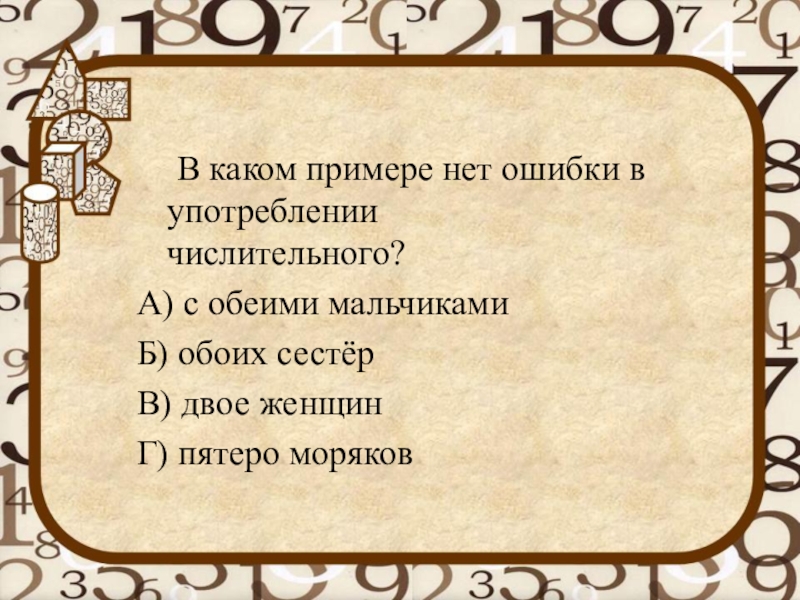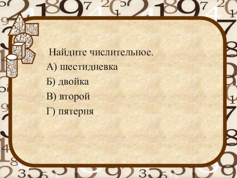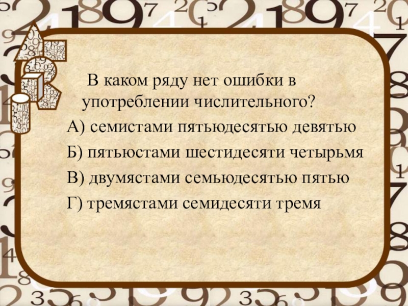 Слайд 7 Выберите варианты ответов с количественными числительными: