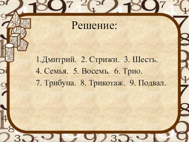 7. Трибуна. 8. Трикотаж. 9. Подвал.