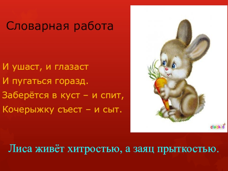 Лиса живёт хитростью, а заяц прыткостью.