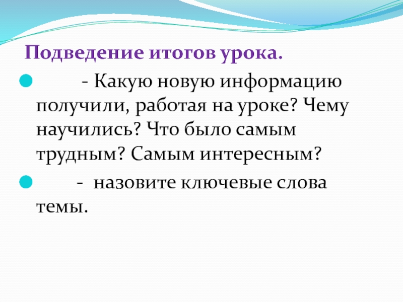 Слайд 8Подведение итогов урока.