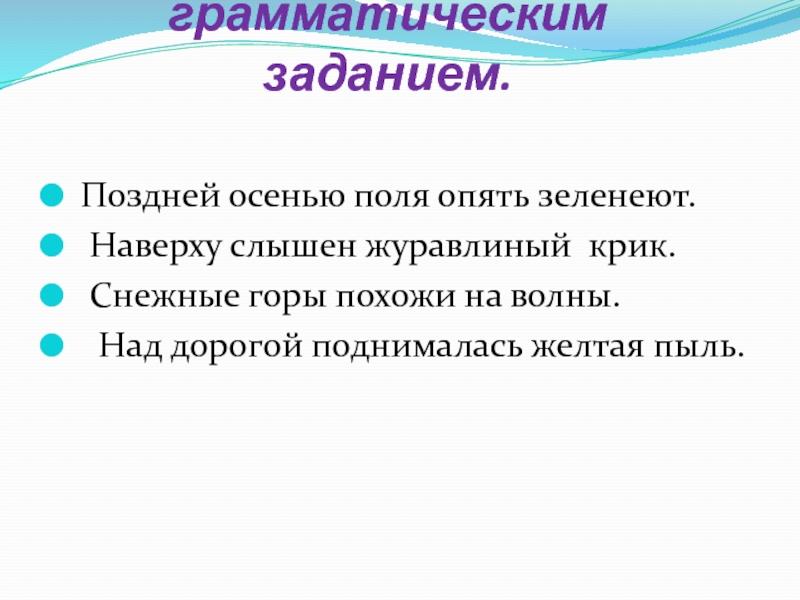Диктант с грамматическим заданием.  Поздней