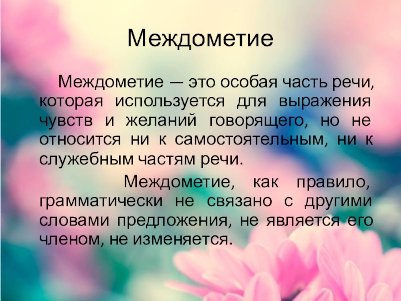 используется для выражения чувств и желаний говорящего, но не относится ни к самостоятельным, ни к служебным частям речи.