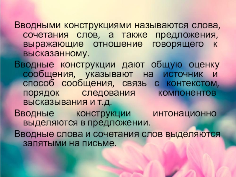 Вводными конструкциями называются слова, сочетания слов, а также предложения, выражающие отношение