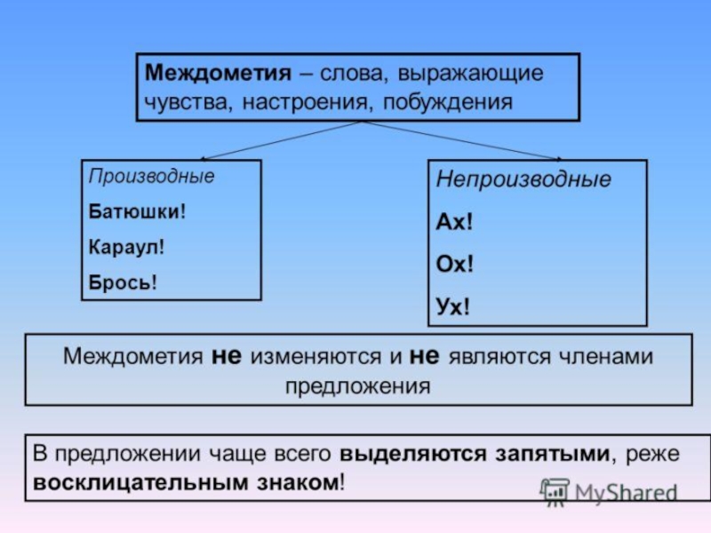 Междометие, как правило, грамматически не связано с другими словами предложения, не является его членом, не изменяется.