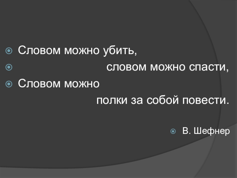 Словом можно убить, словом можно спасти,Словом можно полки за собой