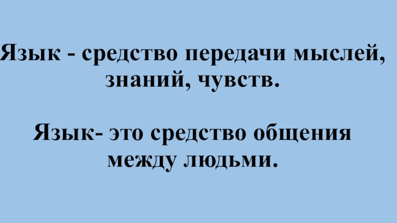 Язык - средство передачи мыслей, знаний, чувств.   Язык- это средство общения между людьми.