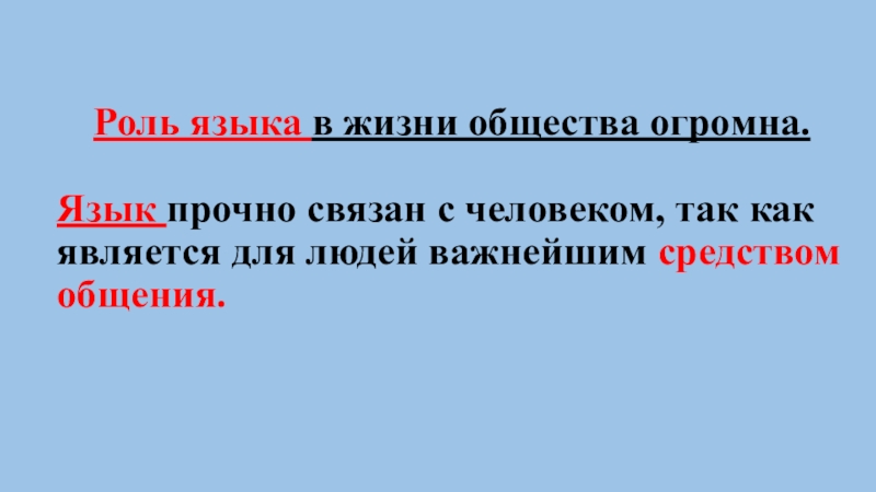 Слайд 10 Роль языка в жизни общества огромна. Язык прочно связан