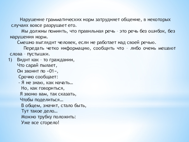 Слайд 13 Нарушение грамматических норм затрудняет общение, в некоторых