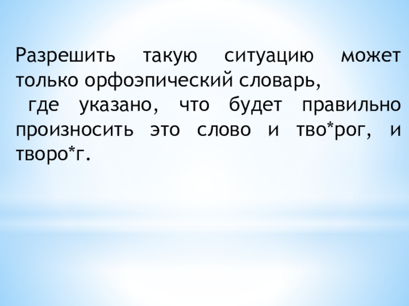 Слайд 12Разрешить такую ситуацию может только орфоэпический словарь,