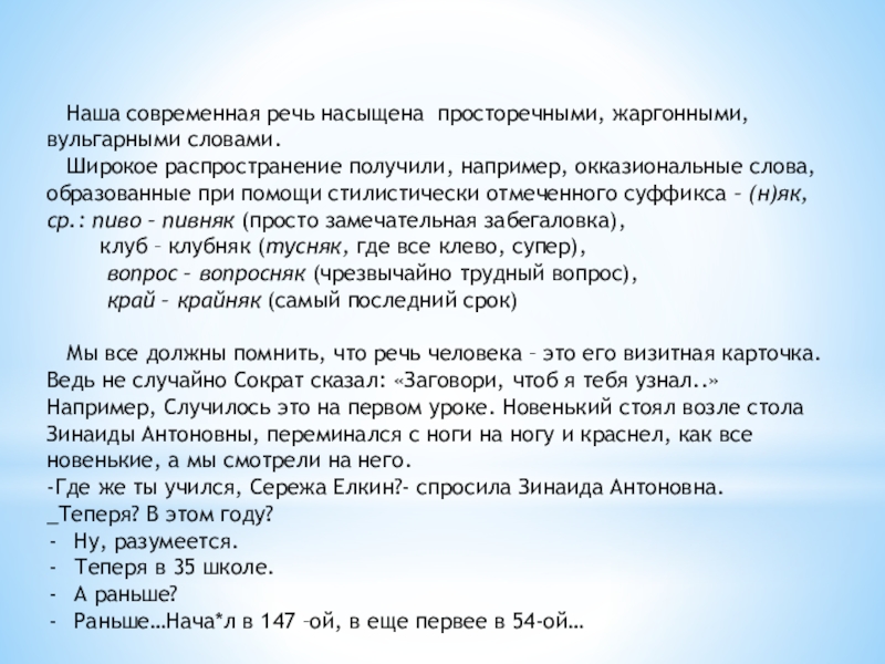 Слайд 9 Наша современная речь насыщена просторечными, жаргонными,