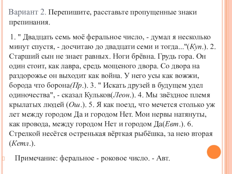 Слайд 39 Вариант 2. Перепишите, расставляя пропущенные знаки препинания. Сделайте