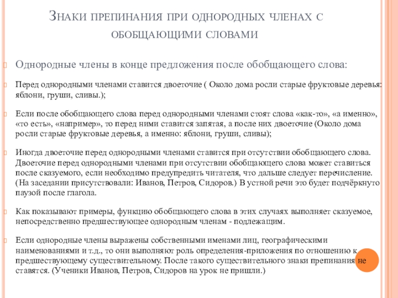 Слайд 20 Знаки препинания при однородных членах с обобщающими словами