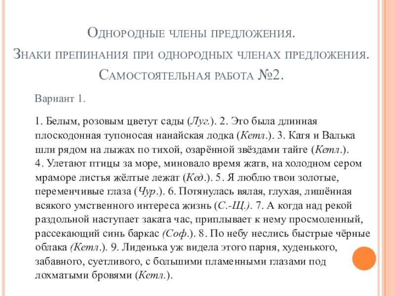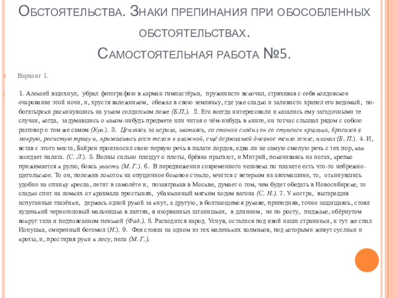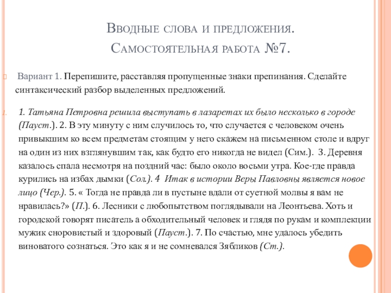 Вариант 1. Перепишите, расставляя пропущенные знаки препинания.