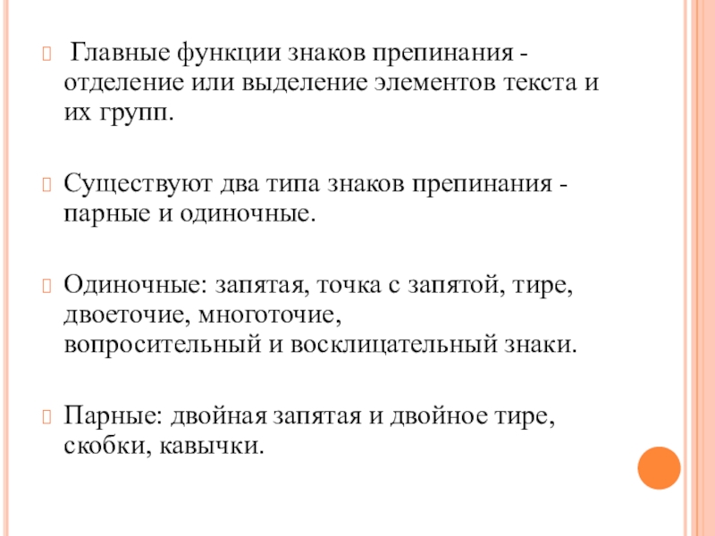 Слайд 7 Главные функции знаков препинания - отделение или выделение элементов текста