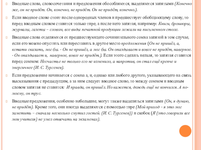 Слайд 43Вводные слова, словосочетания и предложения обособляются, выделяются запятыми (Конечно же, он