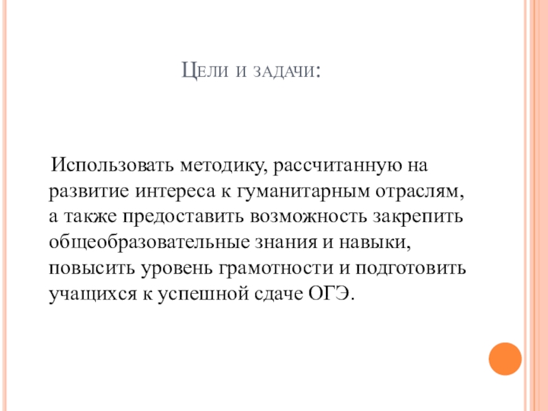 гуманитарным отраслям, а также предоставить возможность закрепить общеобразовательные знания и навыки, повысить уровень грамотности и подготовить учащихся к успешной сдаче ОГЭ.