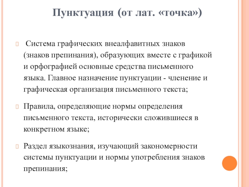 и орфографией основные средства письменного языка. Главное назначение пунктуации - членение и графическая организация письменного текста;