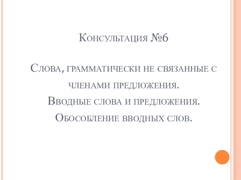 6. Слова, грамматически не связанные с членами предложения. Вводные слова и предложения. Обособление вводных слов (42-45).
