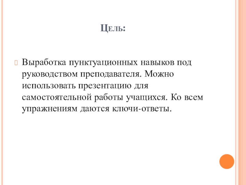 Выработка пунктуационных навыков под руководством преподавателя. Можно использовать презентацию для