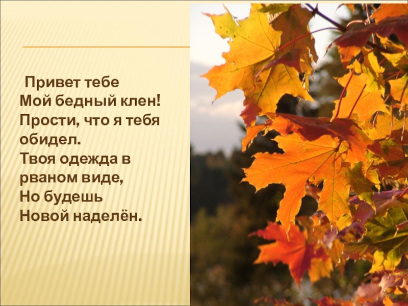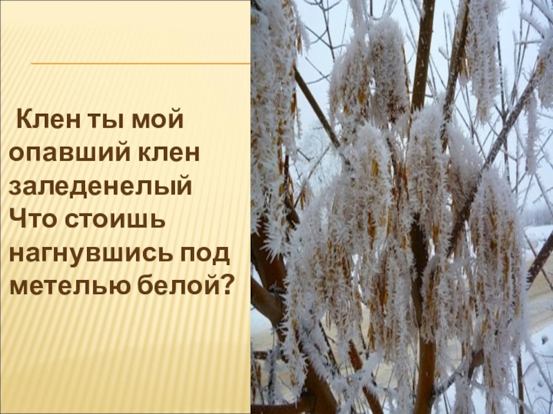Слайд 21 Клен ты мой опавший клен заледенелый