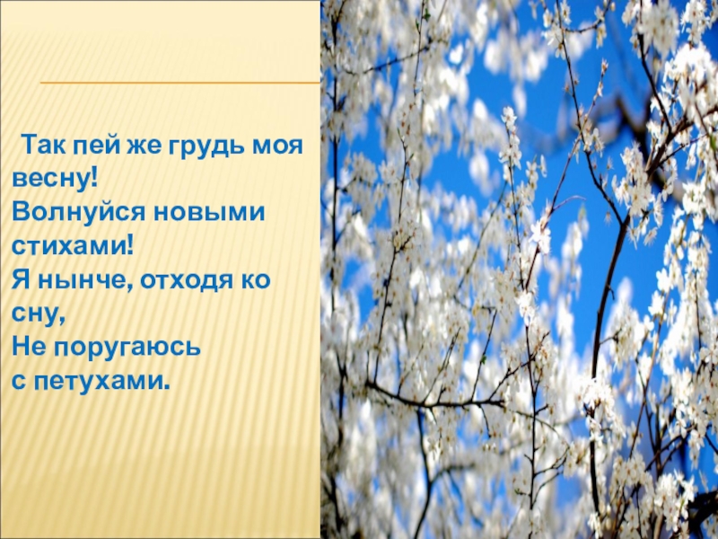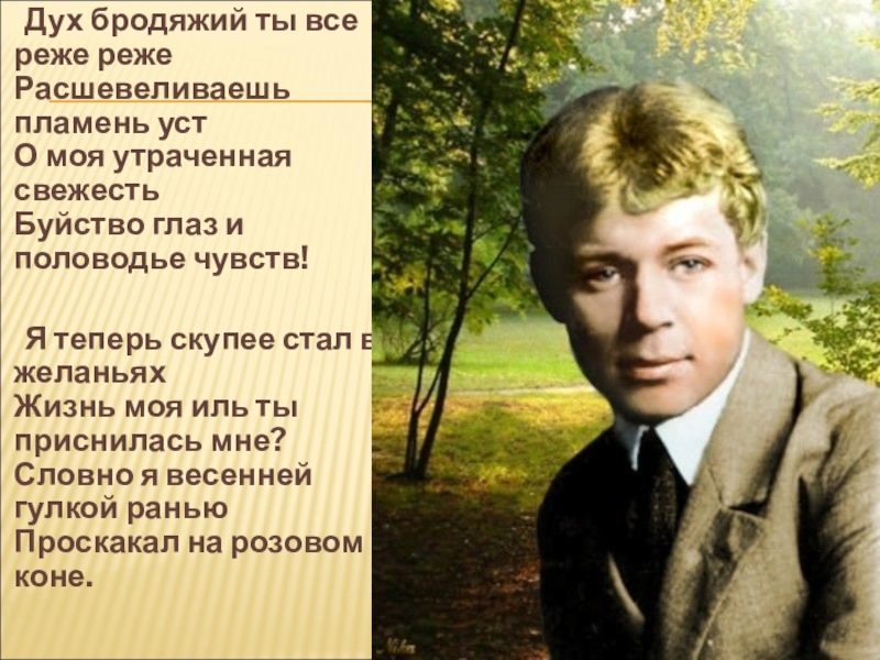 О, моя утраченная свежесть, буйство глаз и половодье чувств.