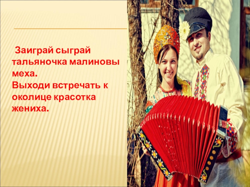 Слайд 18 Заиграй сыграй тальяночка малиновы меха.