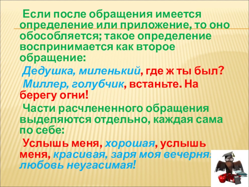 Слайд 4 Если после обращения имеется определение или приложение, то оно обособляется; такое