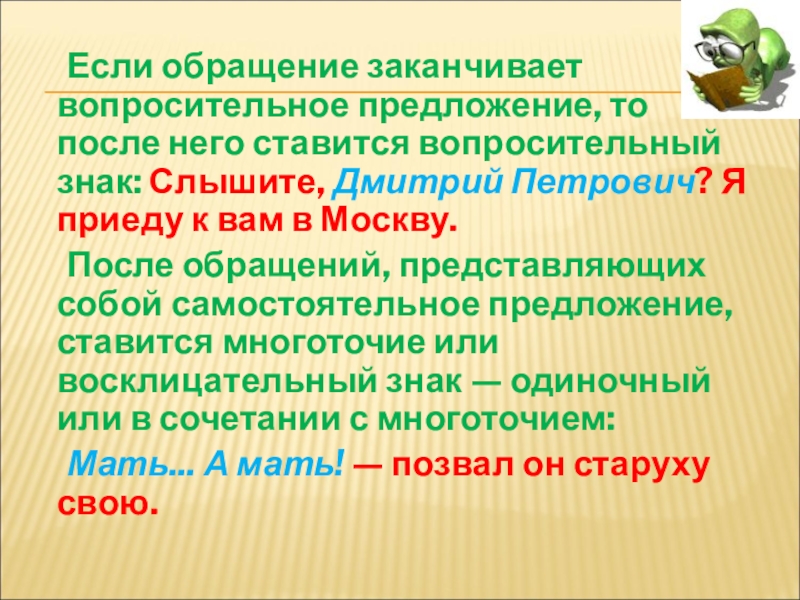 Слайд 5 Если обращение заканчивает вопросительное предложение, то после него ставится вопросительный знак: