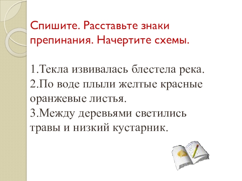 Слайд 12Спишите. Расставьте знаки препинания. Начертите схемы.