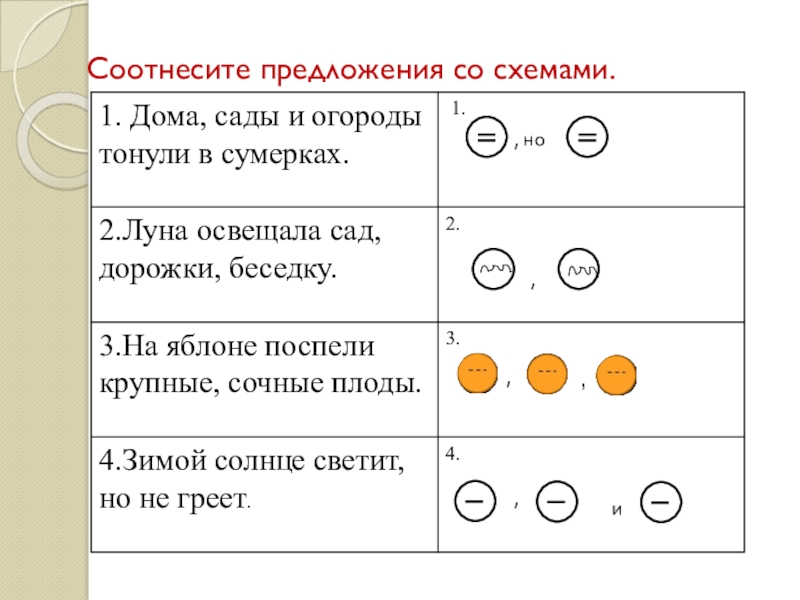 Соотнесите предложения со схемами.