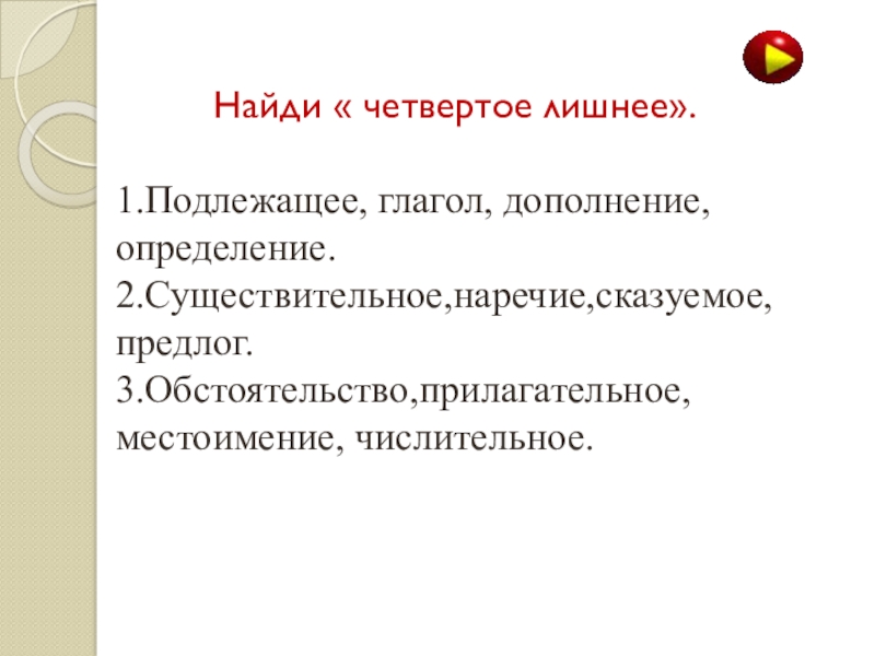 Слайд 5 Найди « четвертое лишнее».